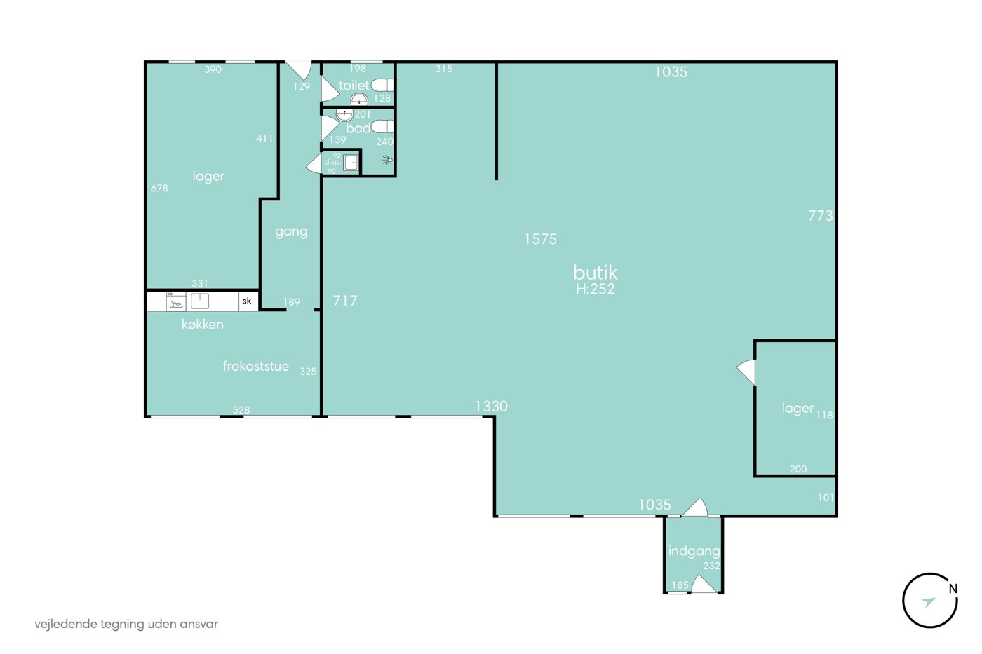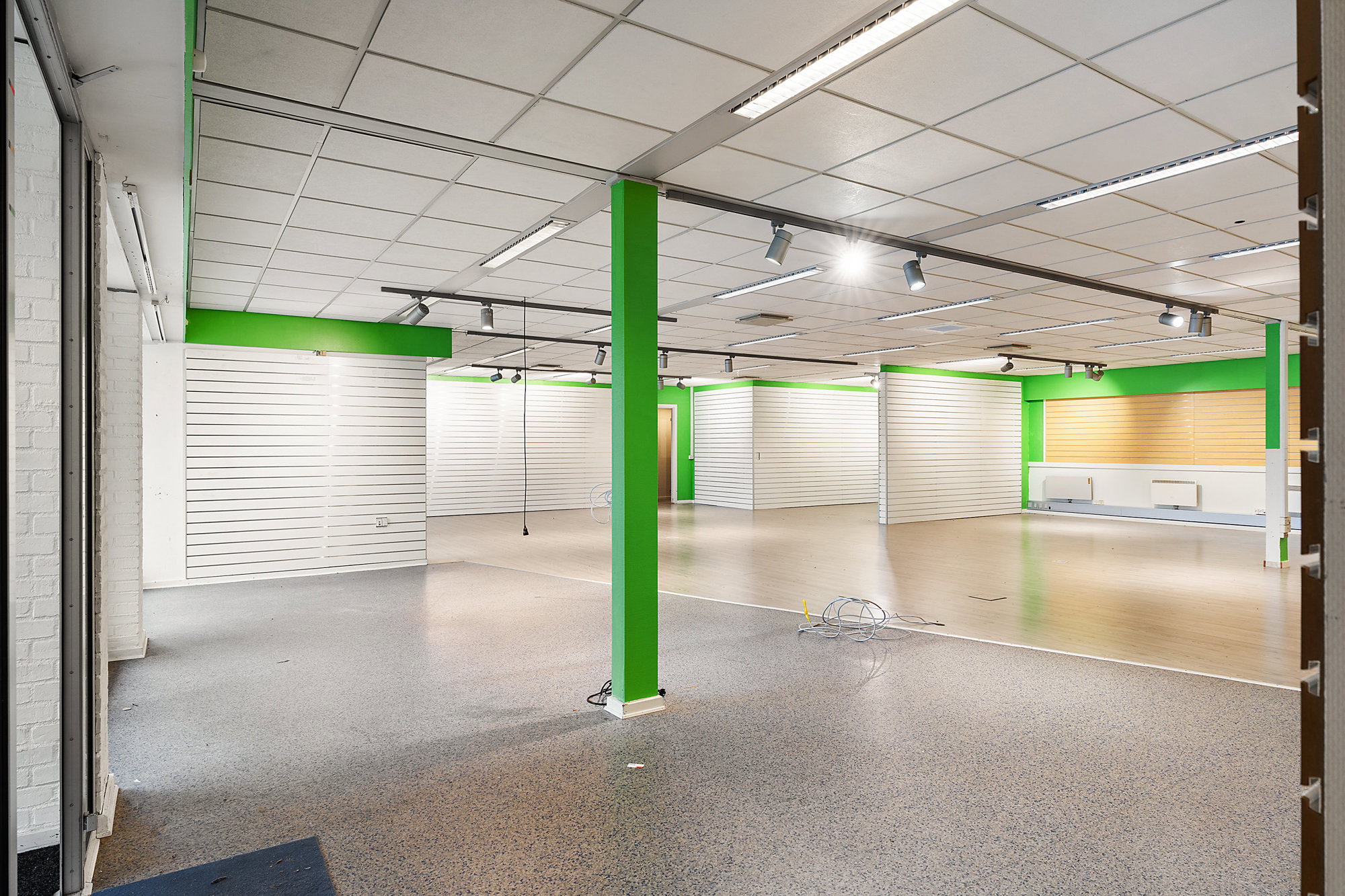 Ejendommen, der er en tidligere bank, har de seneste år været anvendt til detail og indeholder et stort lokale til butik/klinik samt et par mindre lokaler, der kan anvendes til lager eller kontor samt naturligvis en frokoststue og et toilet.