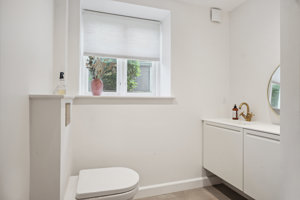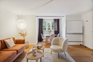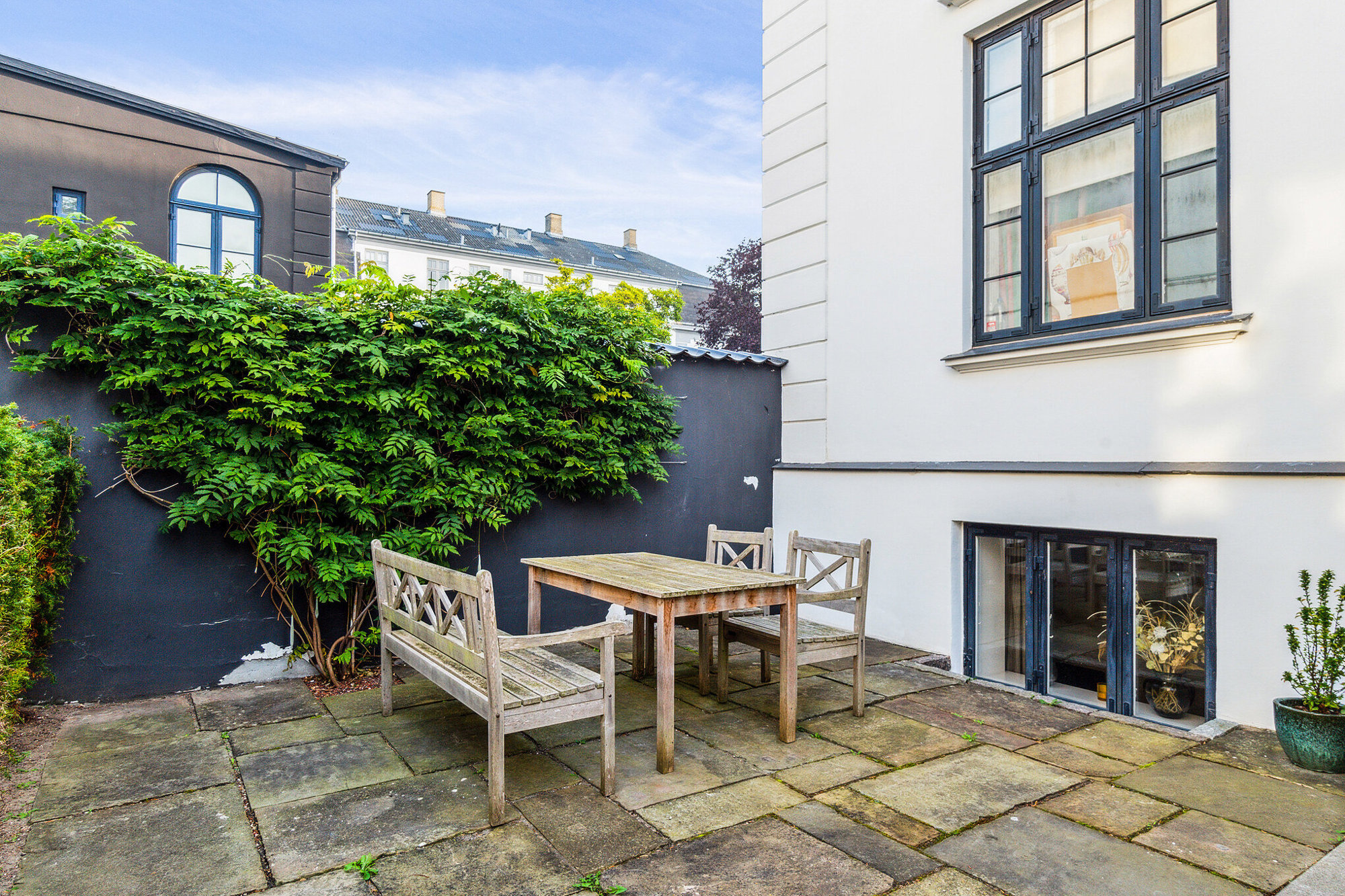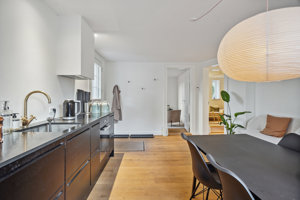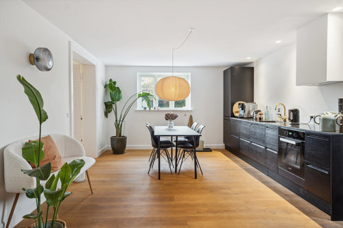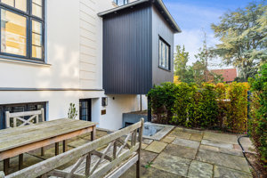 Lejemålet har de sidste par år været anvendt til kontorfællesskab for psykologer og coaches, hvilket er et oplagt formål, da det er momsfrit. Kontorlejemålet er på 147 m2, og er renoveret med nye plankegulve og gulvvarme, nyt toilet m. bad samt nyt køkken. Alle installationer i lejemålet er nye. Der er direkte adgang til lejemålet på siden af ejendommen, hvor man finder egen terrasse med havemøbler. Der er ligeledes en lille overdækket terrasse th. for indgangen.